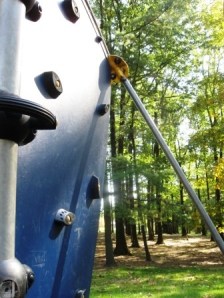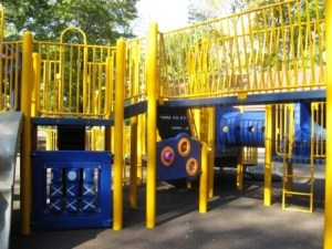 The kids could not get to the playground fast enough, and with good reason. The play equipment at the park is unique – not your typical, run-of-the-mill swing set and slides. My son and his friend immediately found every piece of equipment that could spin in any way and got to work on making themselves dizzy. (If you have read my other reviews, you may be noticing a pattern of his by now.)