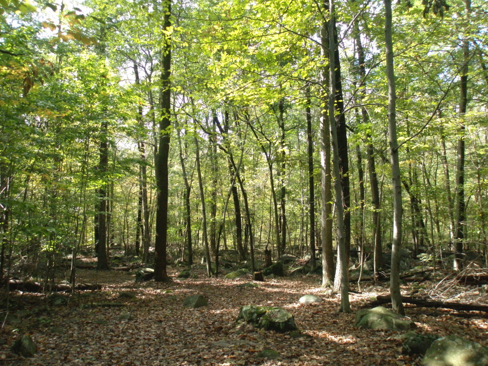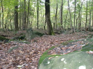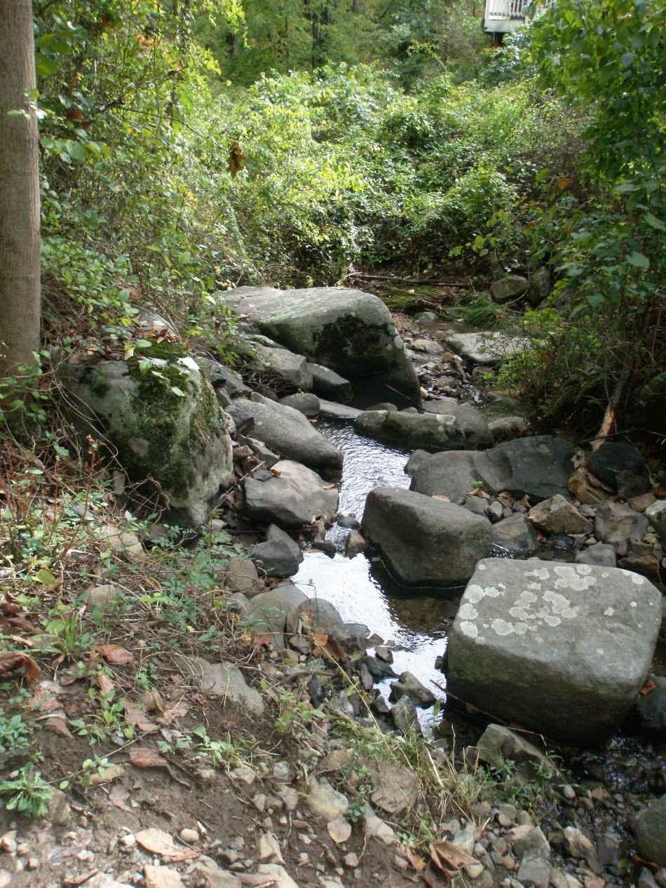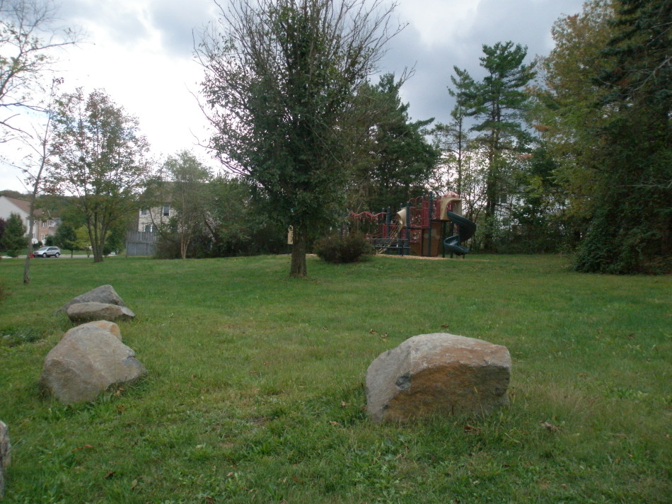 Pleasantview open spaceBut let’s say you get there… you will be rewarded because this is an absolutely beautiful 17.9 acre property. Surprises like this are what make this blogging gig just the best job in the world. With tall trees towering overhead and the softness of the wet leaves underfoot, I made my way down a wide path. Within a few minutes, I came upon a collection of moss-covered boulders. The path ended just a little beyond that, which was a disappointment. So then I started thinking, “Why would visitors come to this park?”