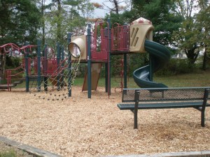 Cherry Tree Park is a fairly typical pocket park, which is tucked deep in the Cherry Tree Farms development off Gilbertsville Road. Rest assured, though, that it is public property that is open to anyone. It is unique in that it is 1.4 acres, which is a bit larger than most mini-parks. The play equipment is set back from the road, deep on the lot and screened by some landscaping, so it’s not readily noticeable. At first, it just looks like an empty building lot. But then a paved path and sign become evident and you know you’re at a place where the kids can climb, run around and commune with nature. The wild space in the rear corner of the park and the more-than-usual land around the play equipment make this park feel a little more out-of-the way, even though it’s in the midst of a suburban development.