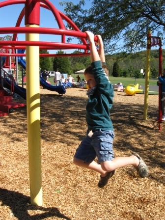 With shopping and restaurants so close to the park, it would be a great spot to visit after dragging the kids through the grocery store or Target. Even better, get some take-out and enjoy a meal at the pavilion and let the kids run around the playground. The play equipment is situated close to the picnic area so moms and dads of young kids can relax (and maybe eat a meal) while the kids play. The pavilion is also available for individual or group rentals and would be a great place for birthday parties or group gatherings-like that MOMS Club picnic I attended all those years ago.