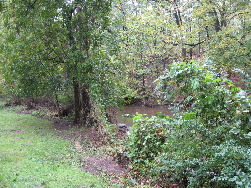 Sprogels Run Park is a 22-acre stretch of wilderness that runs between two residential neighborhoods. As I entered the park from Doe Run Lane (off Kepler Road), it reminded me of the wooded area of Sprogels Run near Washington Street and Buchert Road that I enjoyed so much as a kid. Especially after all the rain, there were some shallow pools and babbling water running over rocks.