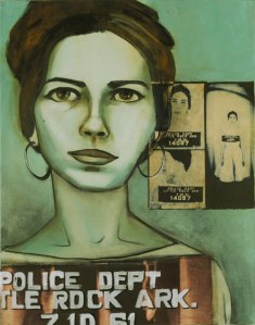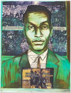 consciousness where segregation seemed normal and fighting it was a daunting task. To realize these goals, Janssen re-imagines the mug shots of her subjects using oil, acrylic, rust and collage. Mug shots are normally portraits of shame, but in those belonging to the Bus Boycotters and Freedom Riders, she sees their heroism, determination and courage.