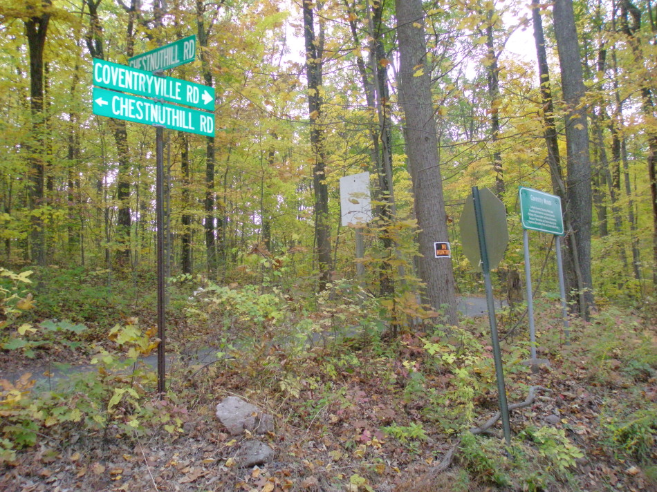 Fortunately, I had my North Coventry guides on my second visit to Coventry Woods. We went in at the Fernbrook access point at the intersection of Fernbrook Lane and St. Peters Road. The Township recently acquired this 39-acre parcel with numerous buildings from Nueva Esperanza Youth Camp. The purchase was made possible by a grant from the Pennyslvania Department of Conservation and Natural Resources. Fernbrook Access