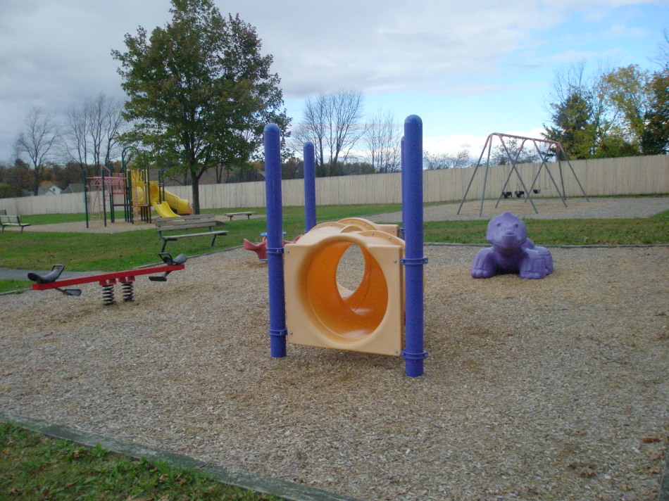 Although I don’t seem to have gotten a picture of it, there was actually a tetherball set-up. I remember playing tetherball at Laurelwood Pool in North Coventry many, many years ago, but haven’t seen the game in ages. In general, two opposing players hit a ball attached to a rope around a pole. One is hitting the ball clockwise, the other is hitting it counter-clockwise. The winner is the first one to get the rope wrapped all the way around the pole, going in their direction. Stop by Community Park on the Ridge and give it a try!