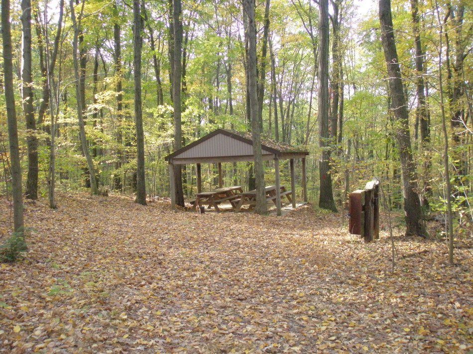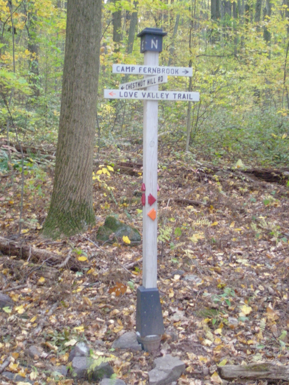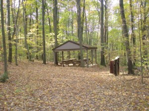 Access road (to left) from Coventryville Rd. entrance Pavilion near Coventryville Rd. access Charcoal Hearth marker, courtesy of Jay Kline Signpost made from recycled wood