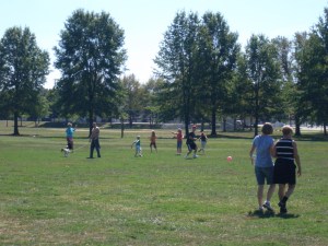 The trails around the lake and in the woods behind and adjacent to Scherfel Field provide a chance to re-connect with nature before or after a game, on a daily walk or perhaps a few times a week to de-stress after work. The lake view is very soothing. Visiting the park on your lunch hour might also do the trick, since there is a new lake overlook area with beautiful pavers, tables and a grill. Coming alone or with some friends in the middle of the day just might release those knots of tension in your neck and help you get through the afternoon!