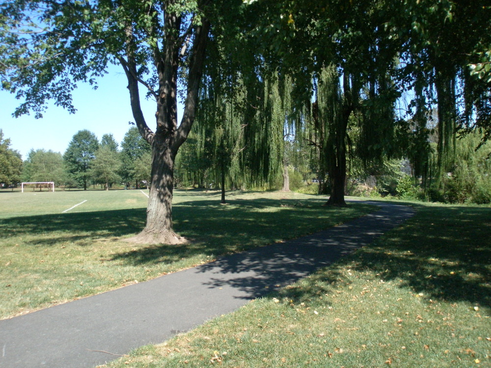 Apparently, there had been some trouble recently with “turfing,” the practice of driving a vehicle fast on grass and messing it all up. There is a small parking area at the entrance to Potts Drive Park, but it is no longer accessible in order to keep vehicles out of the park.